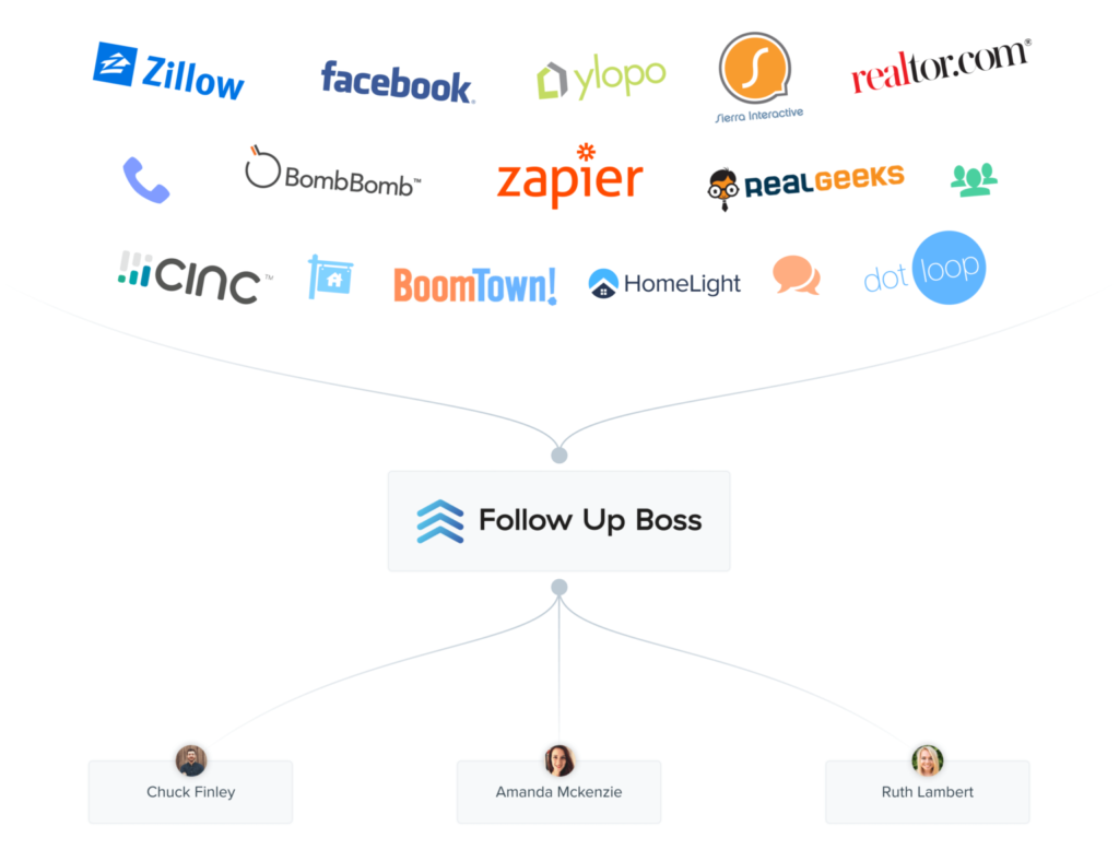 Sync Follow Up Boss with your essential tools for a seamless workflow. We integrate your CRM with lead sources like Zillow, Facebook, and Realtor.com, as well as dialers, email marketing tools, and automation platforms like Zapier. Everything works together to boost efficiency.